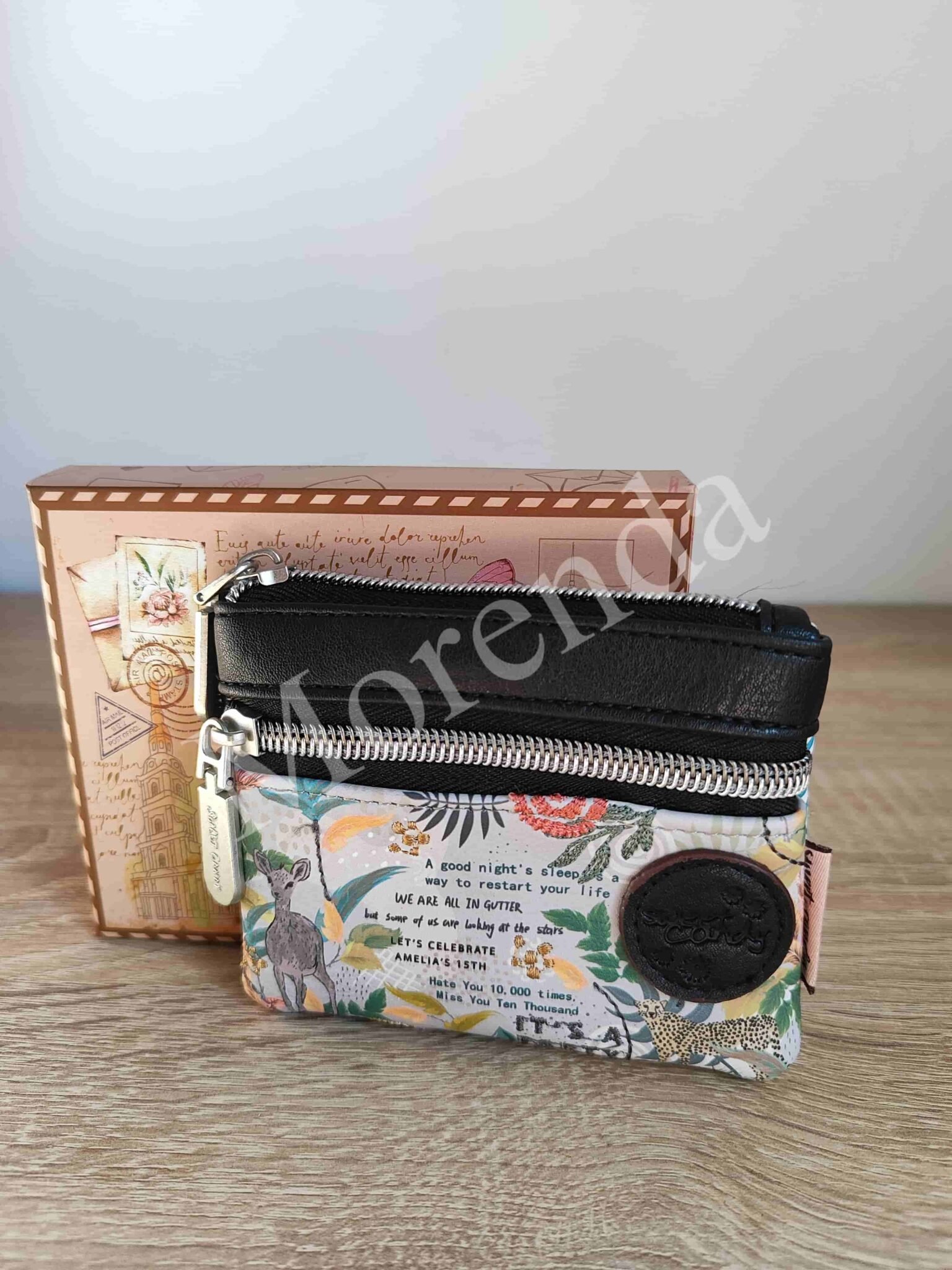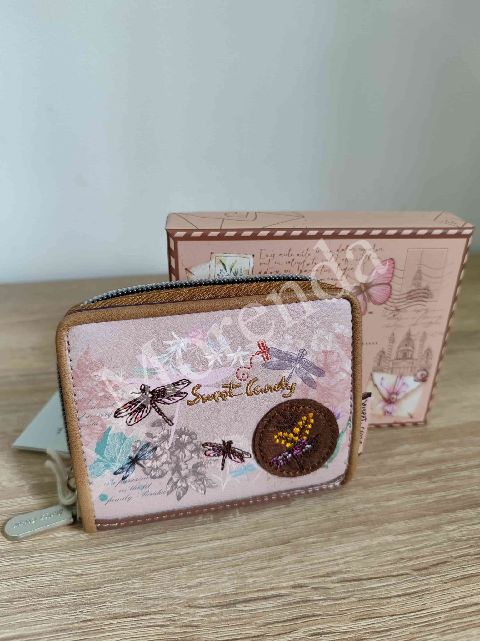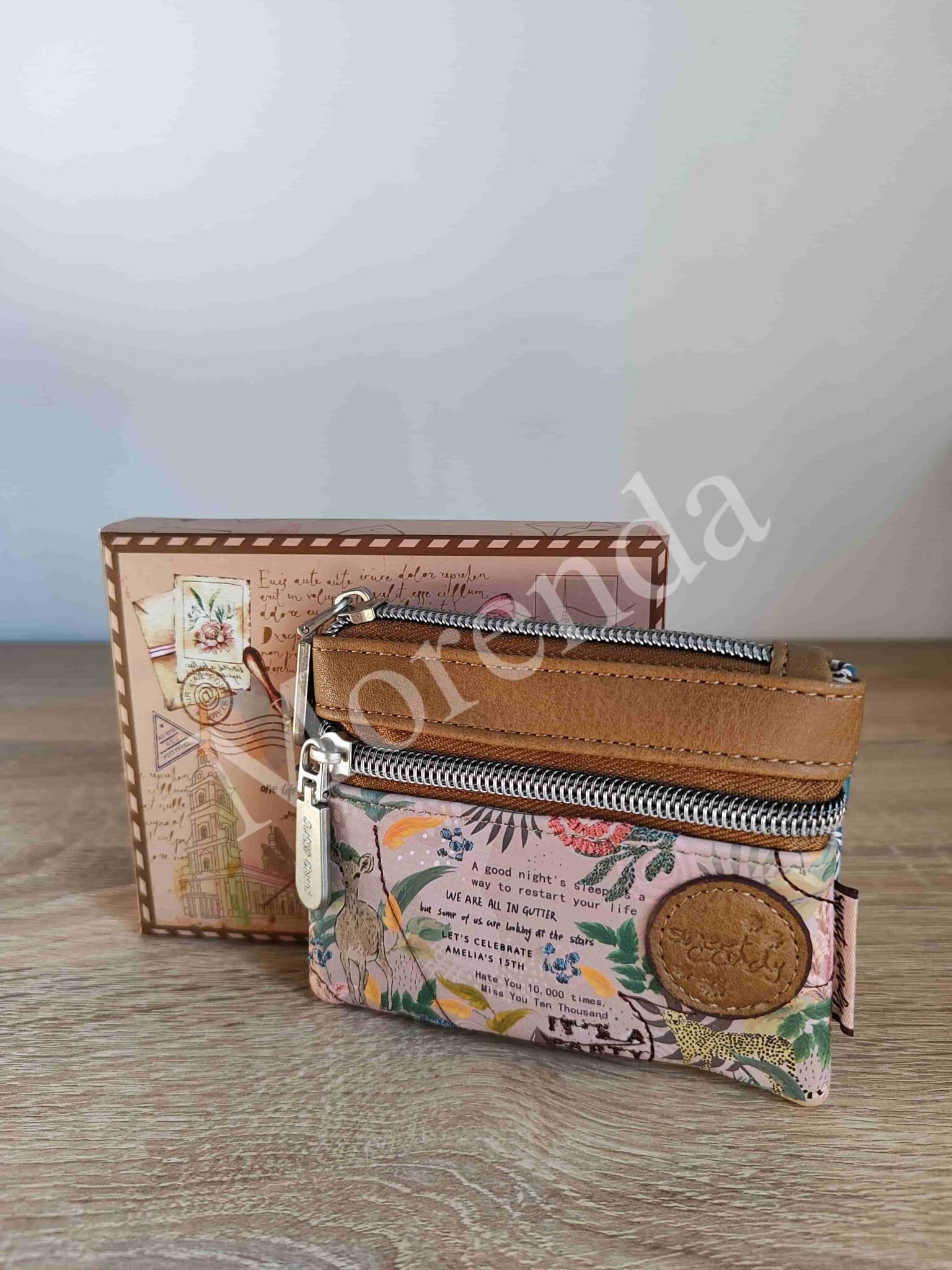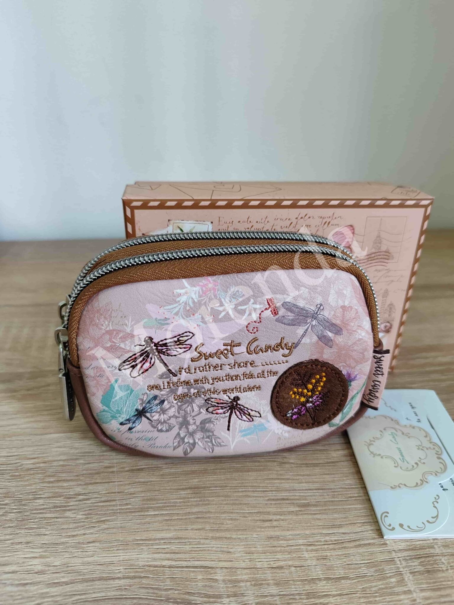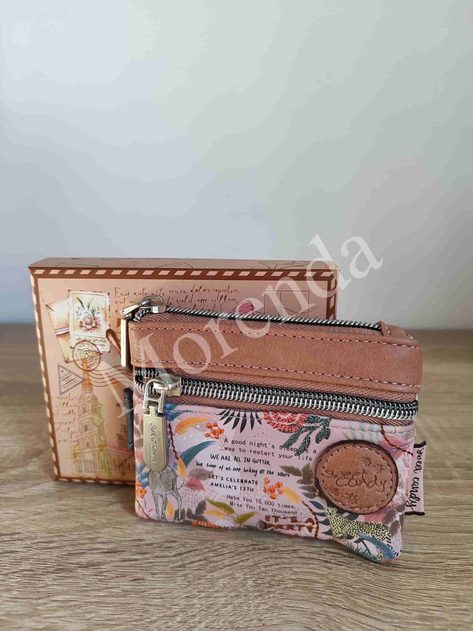Monedero tarjetero flores marron