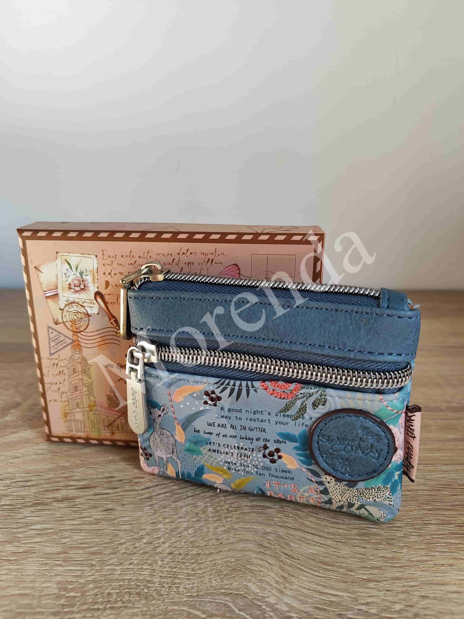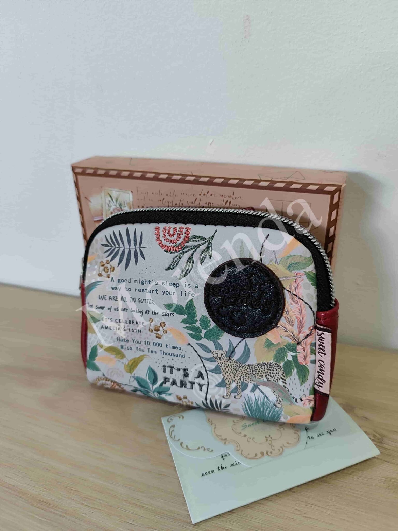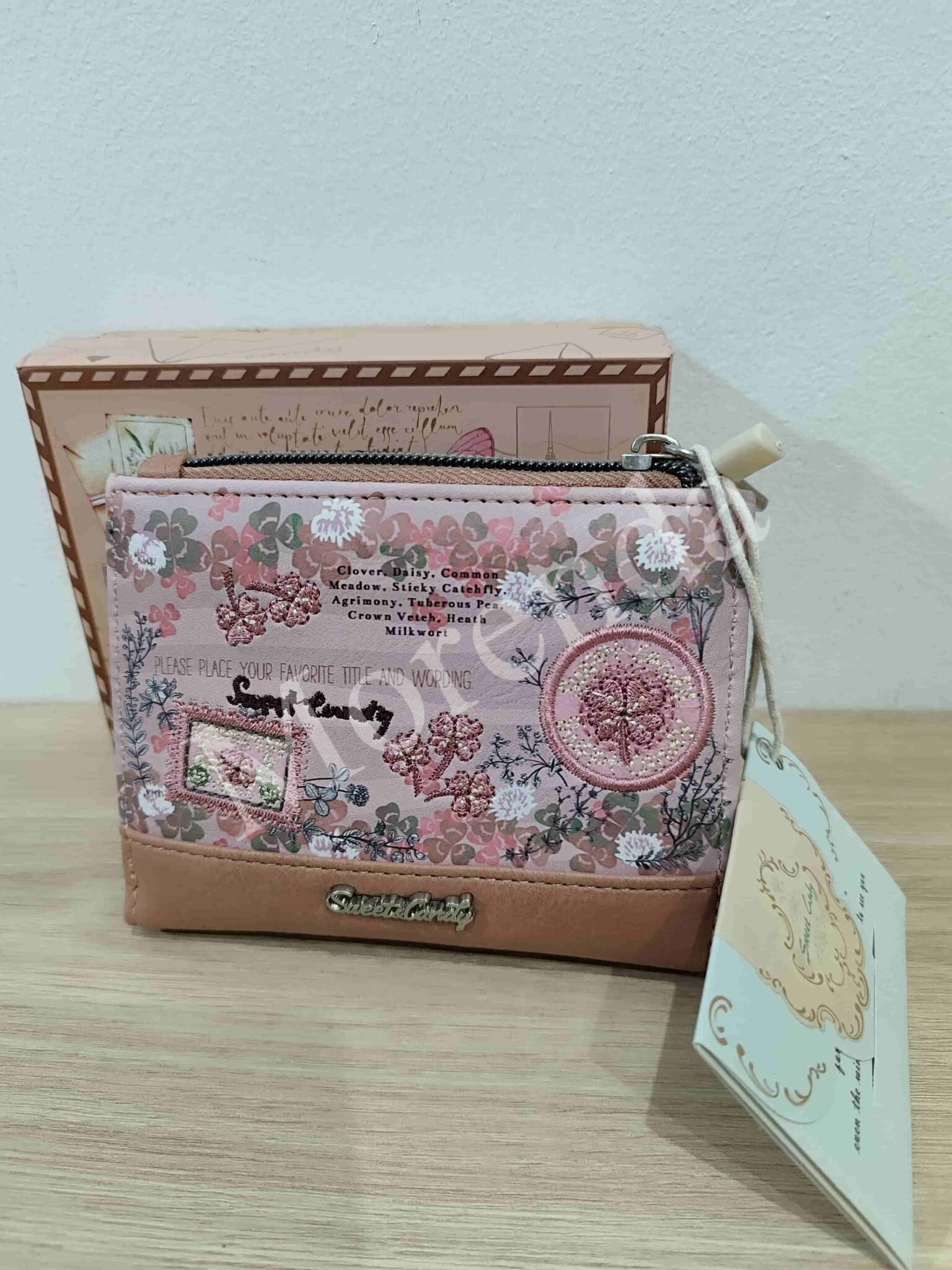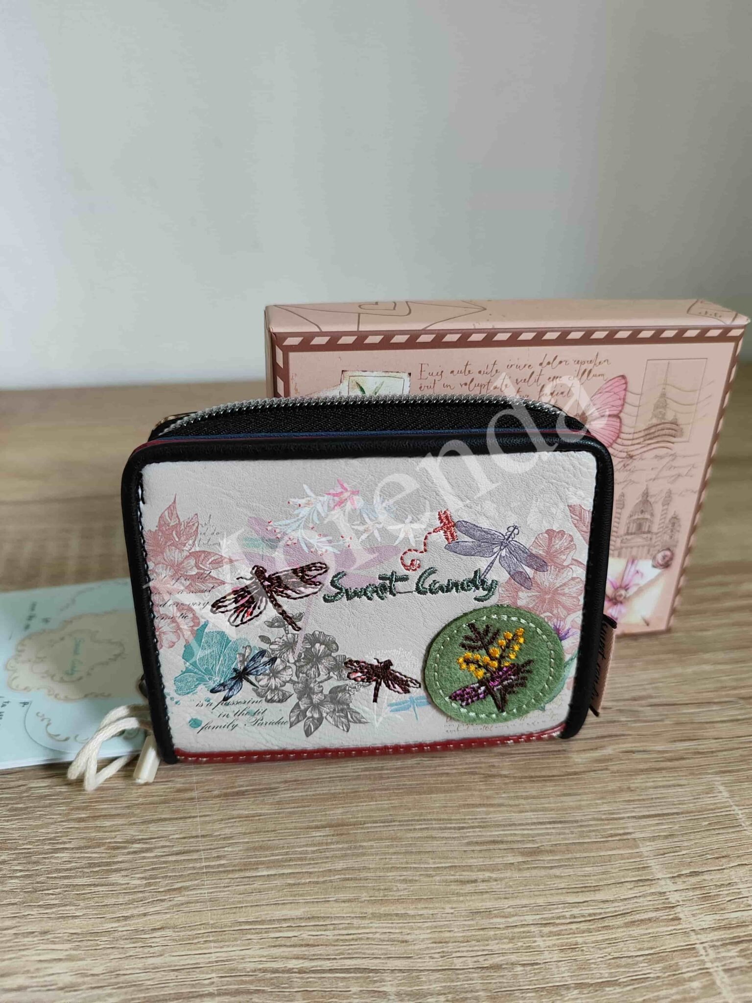 Monedero tarjetero flores marron