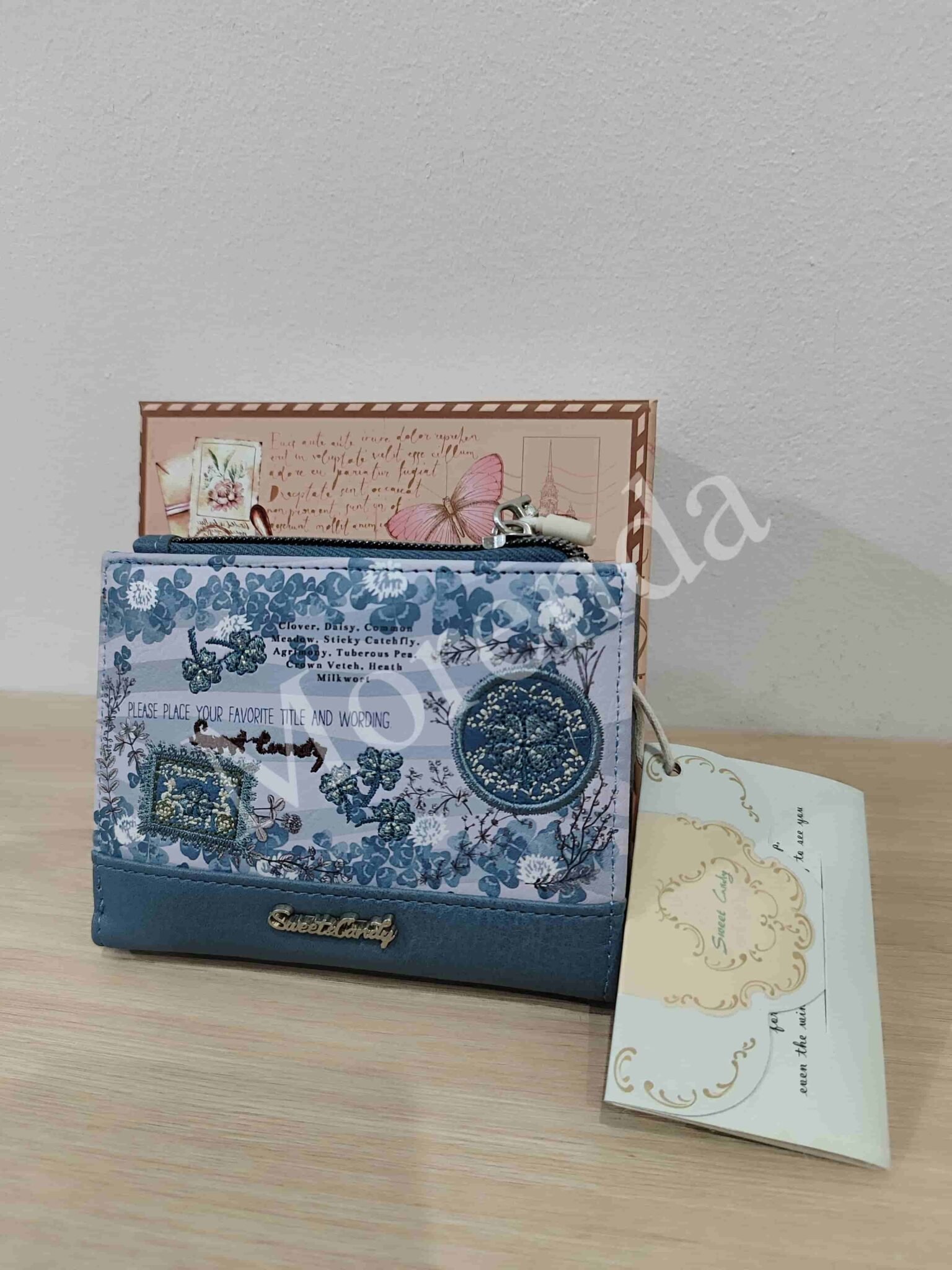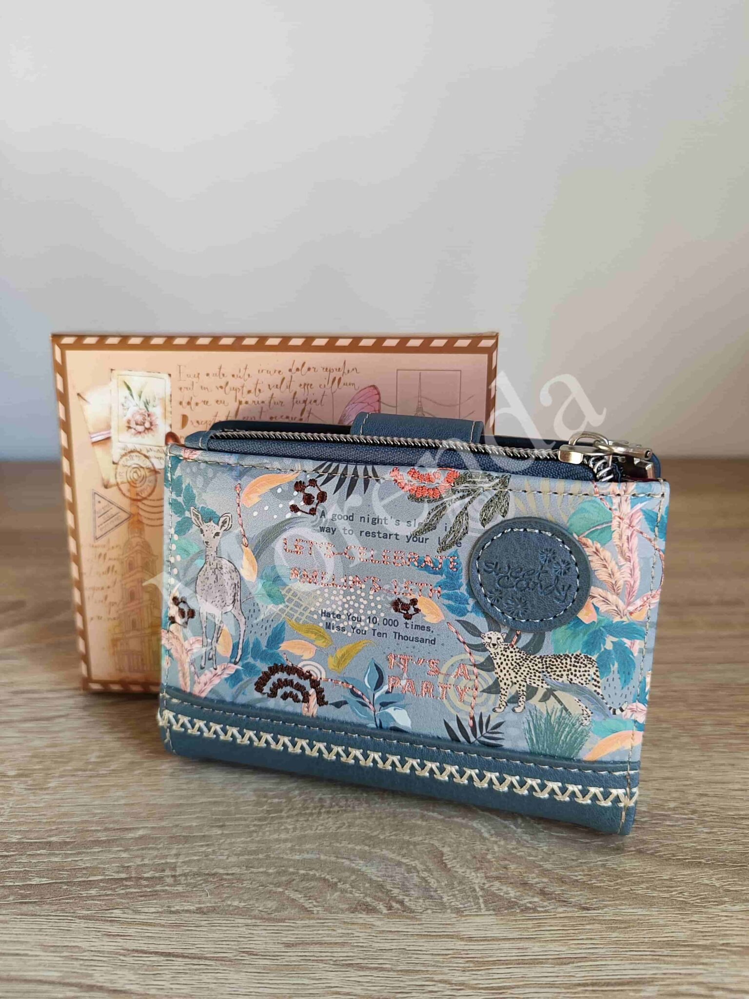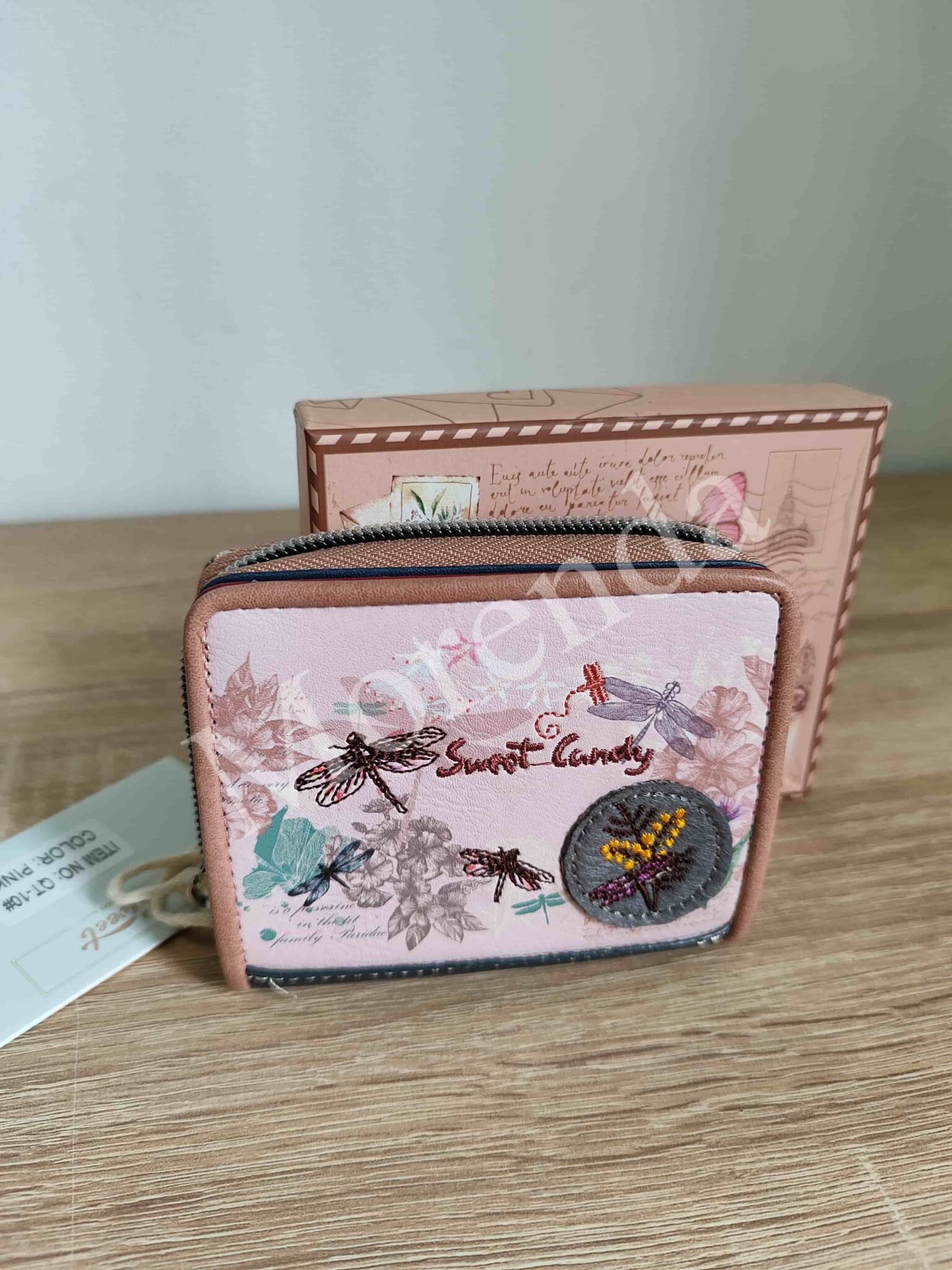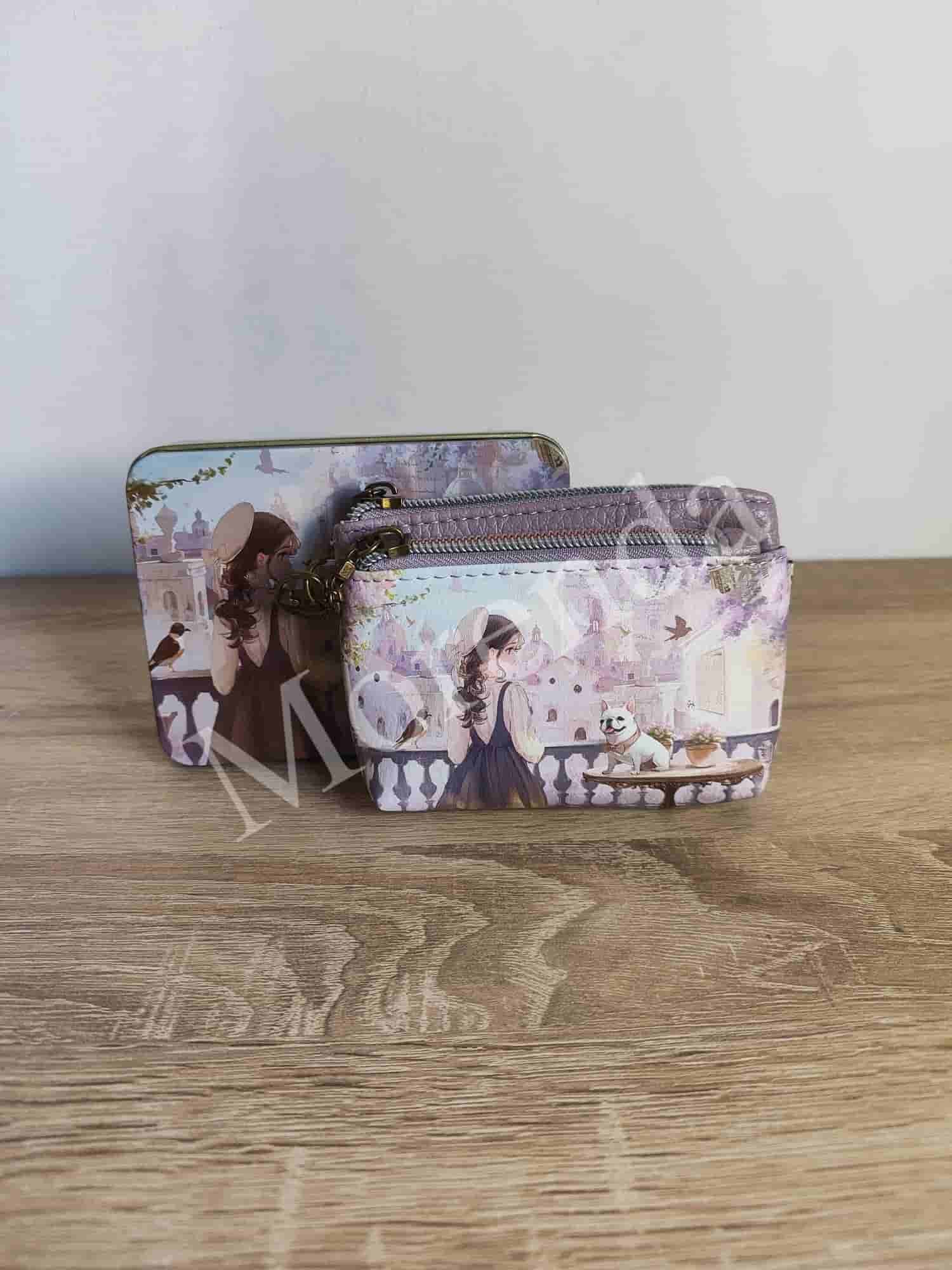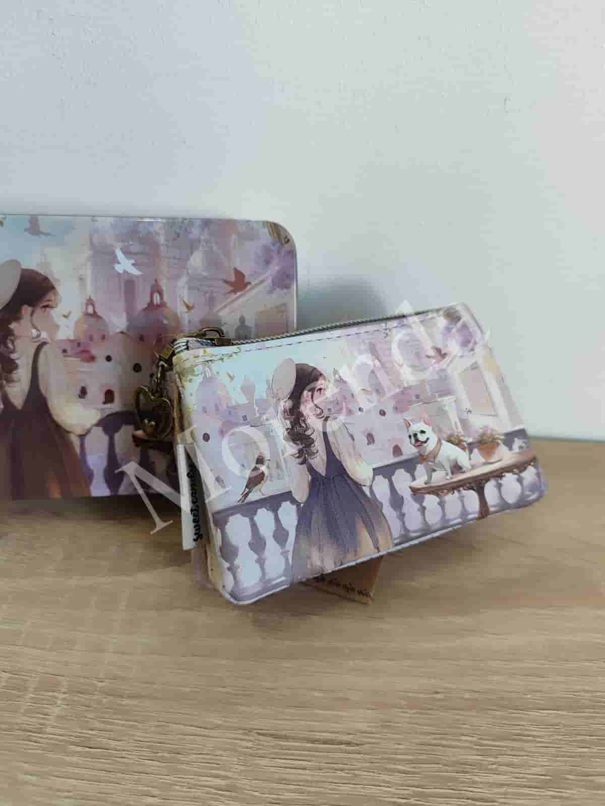 Monedero tarjetero flores marron