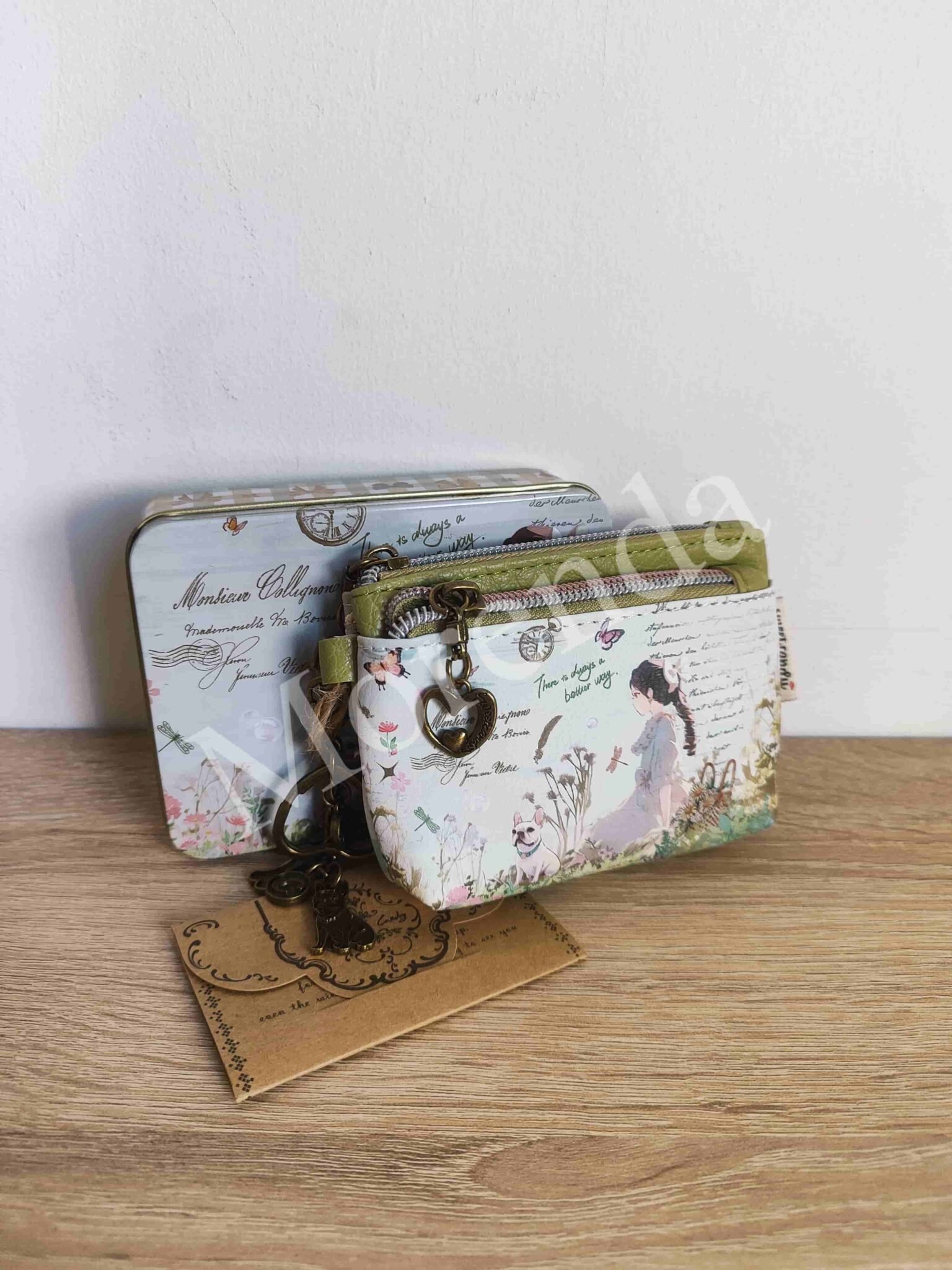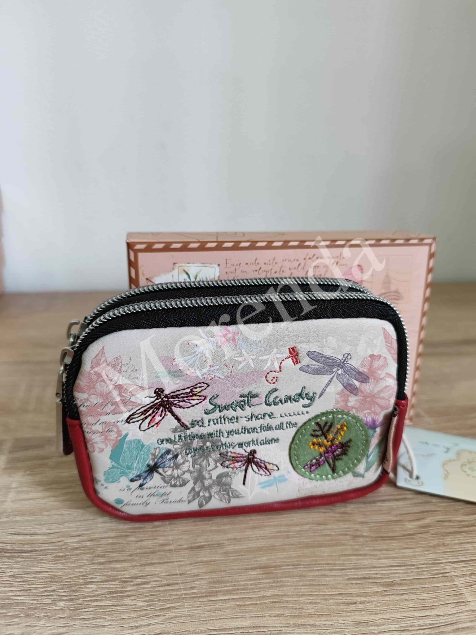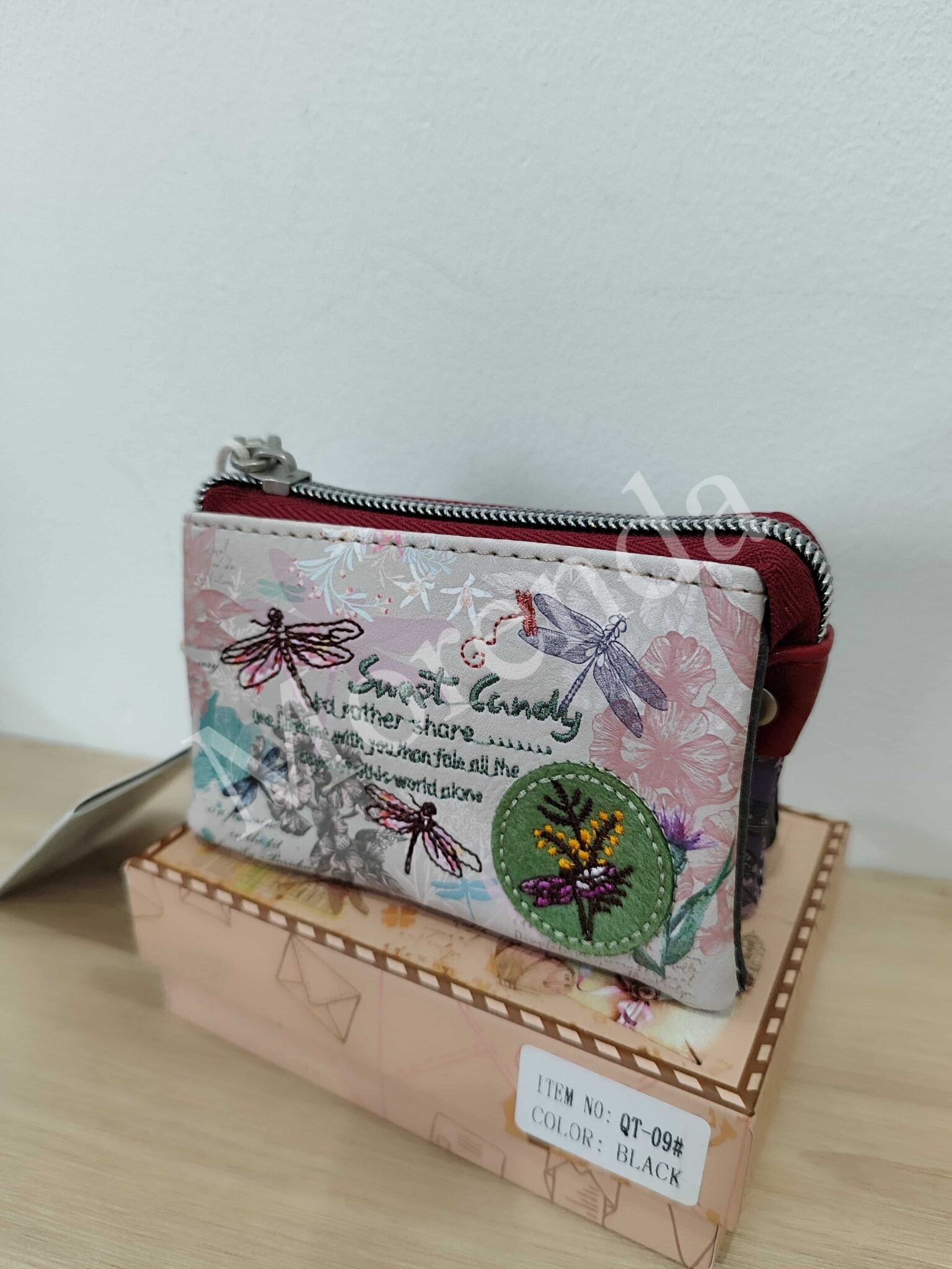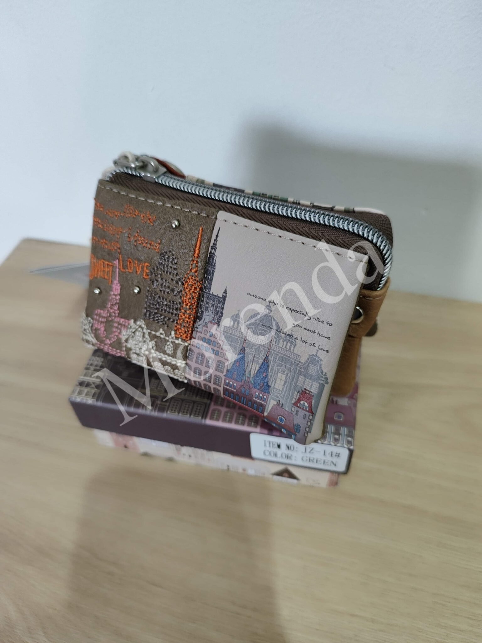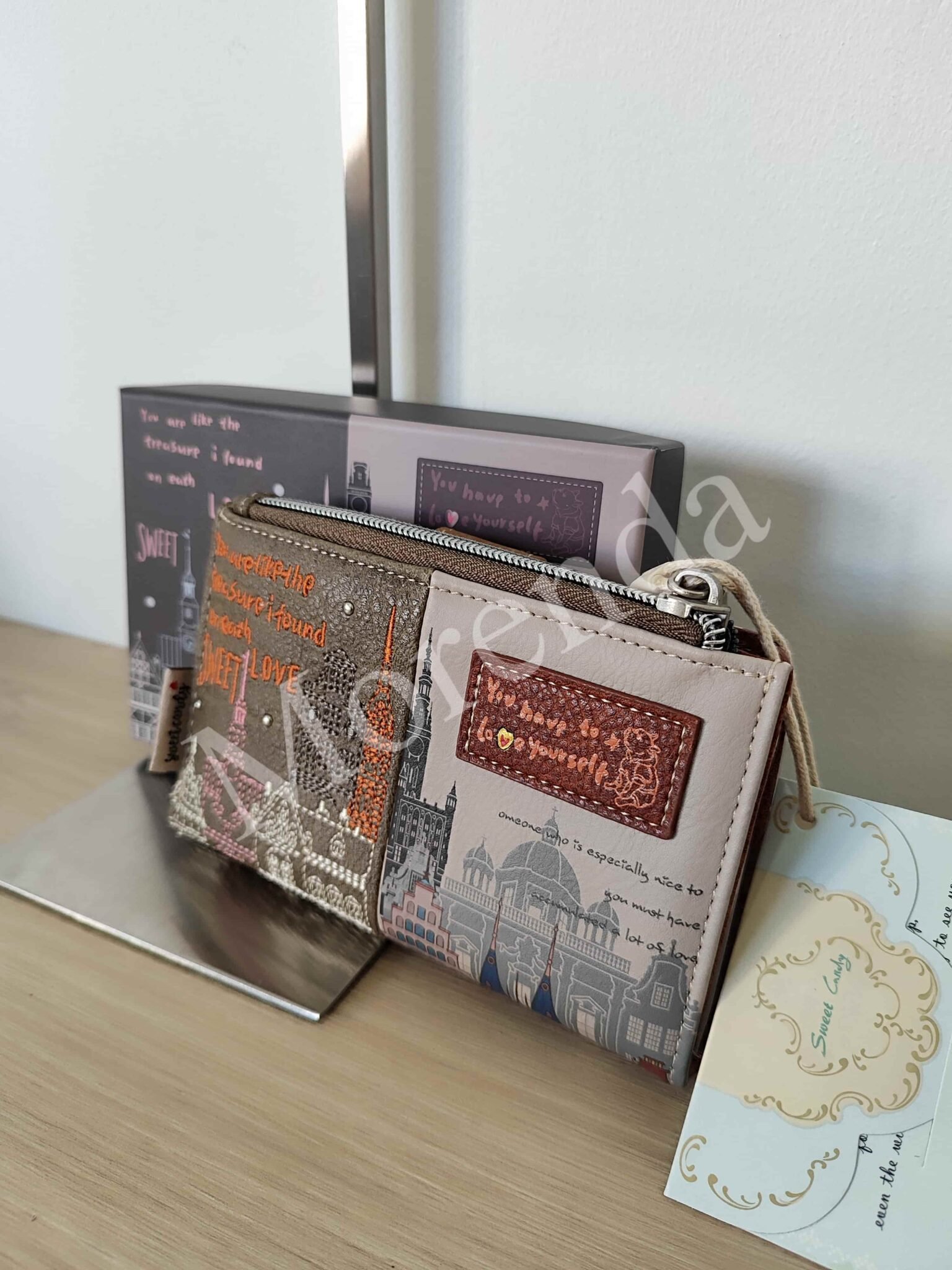 Monedero tarjetero flores marron