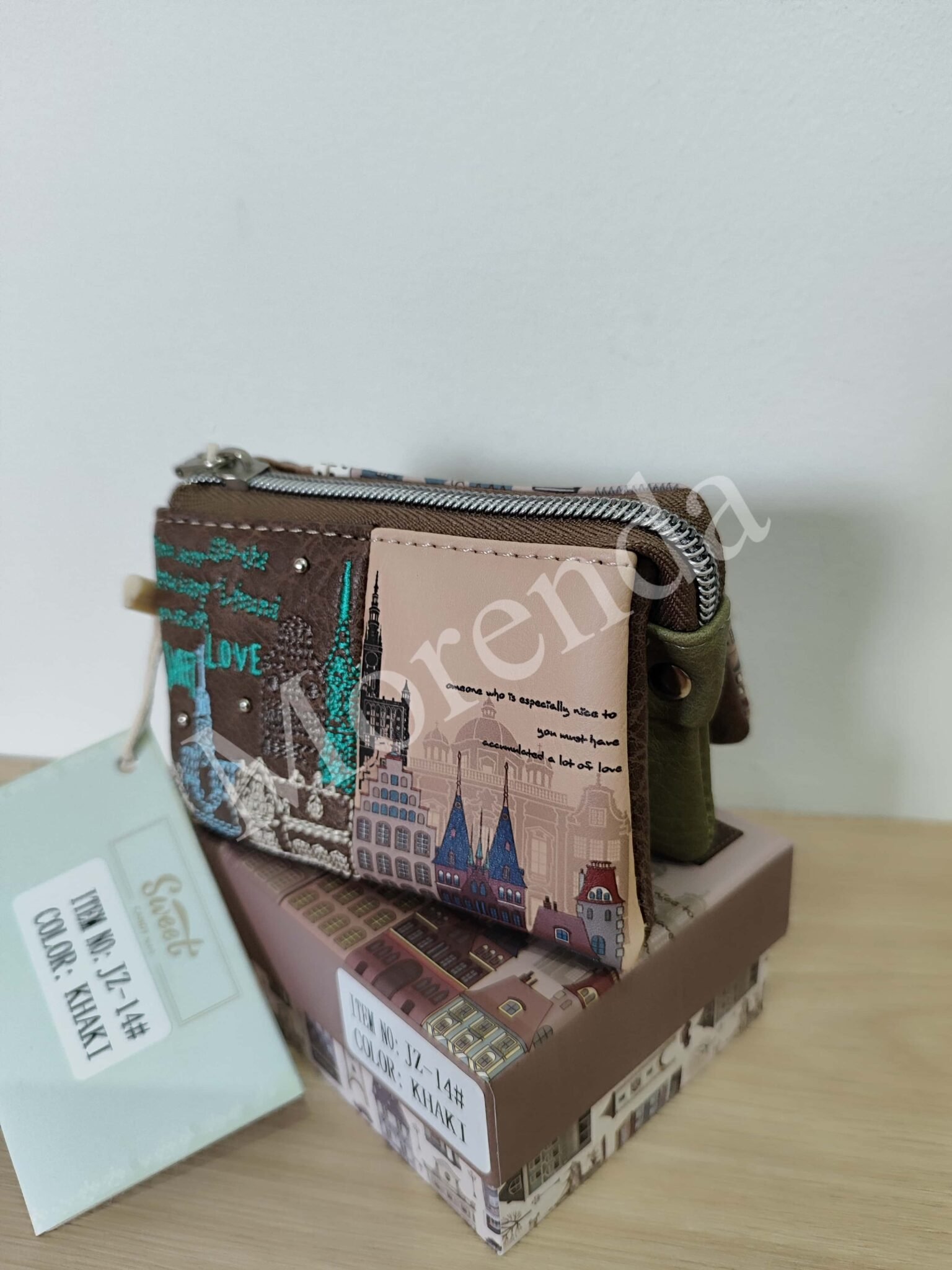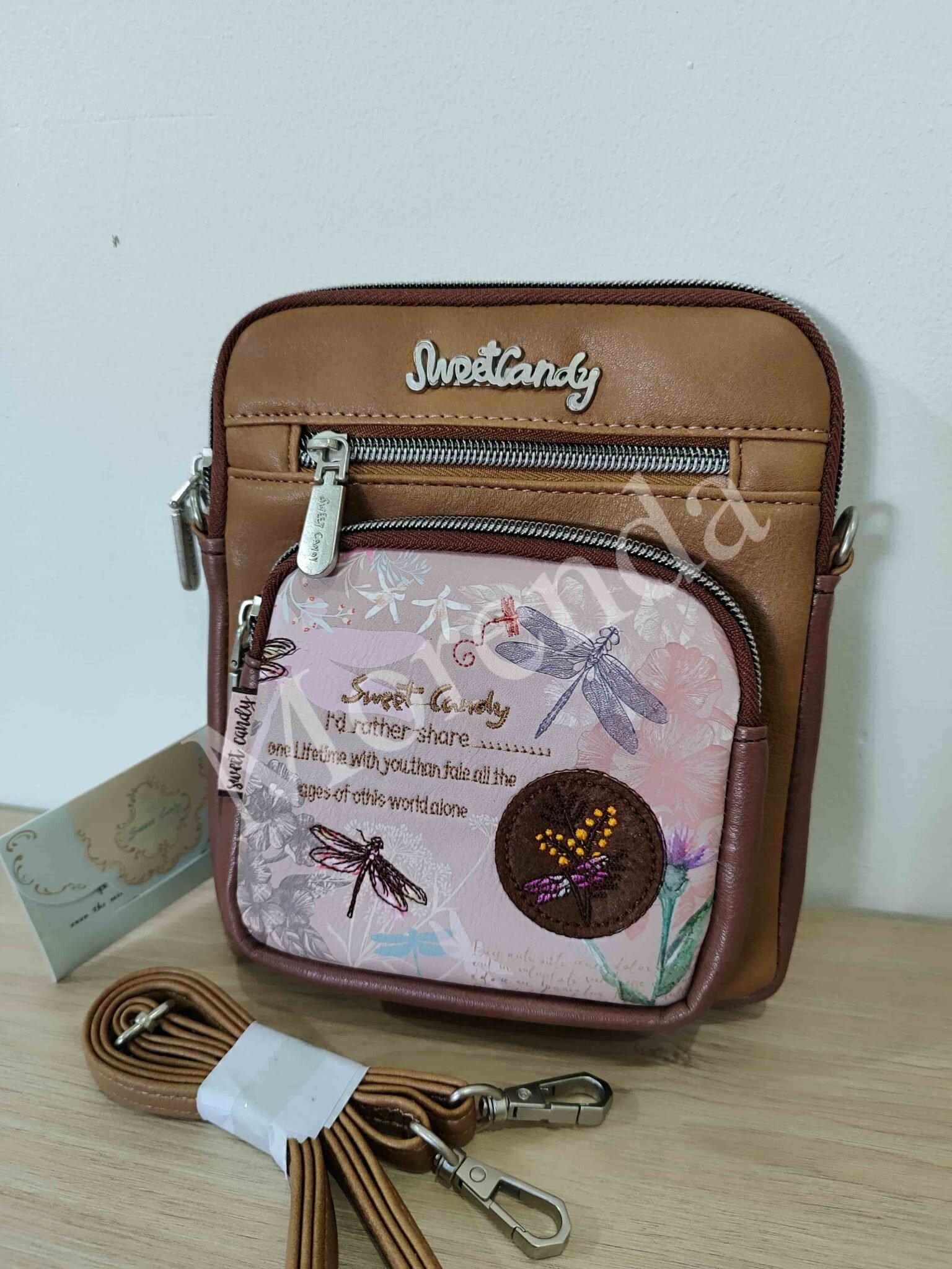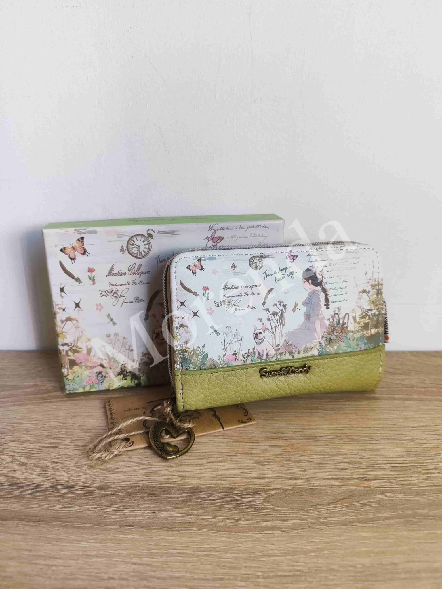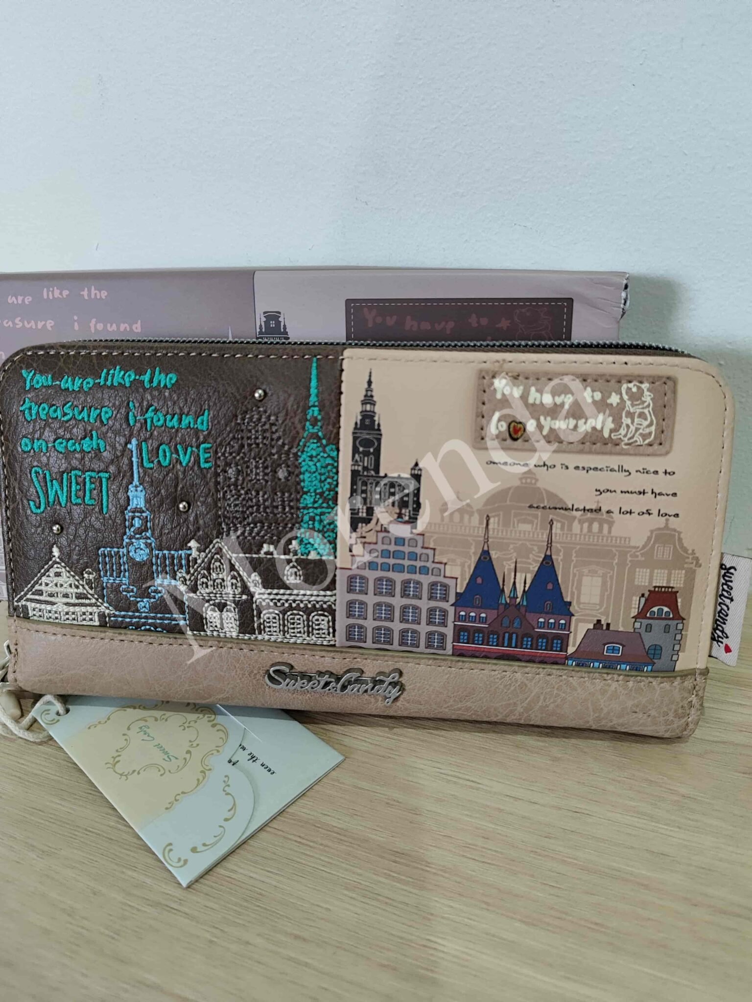 Monedero tarjetero flores marron