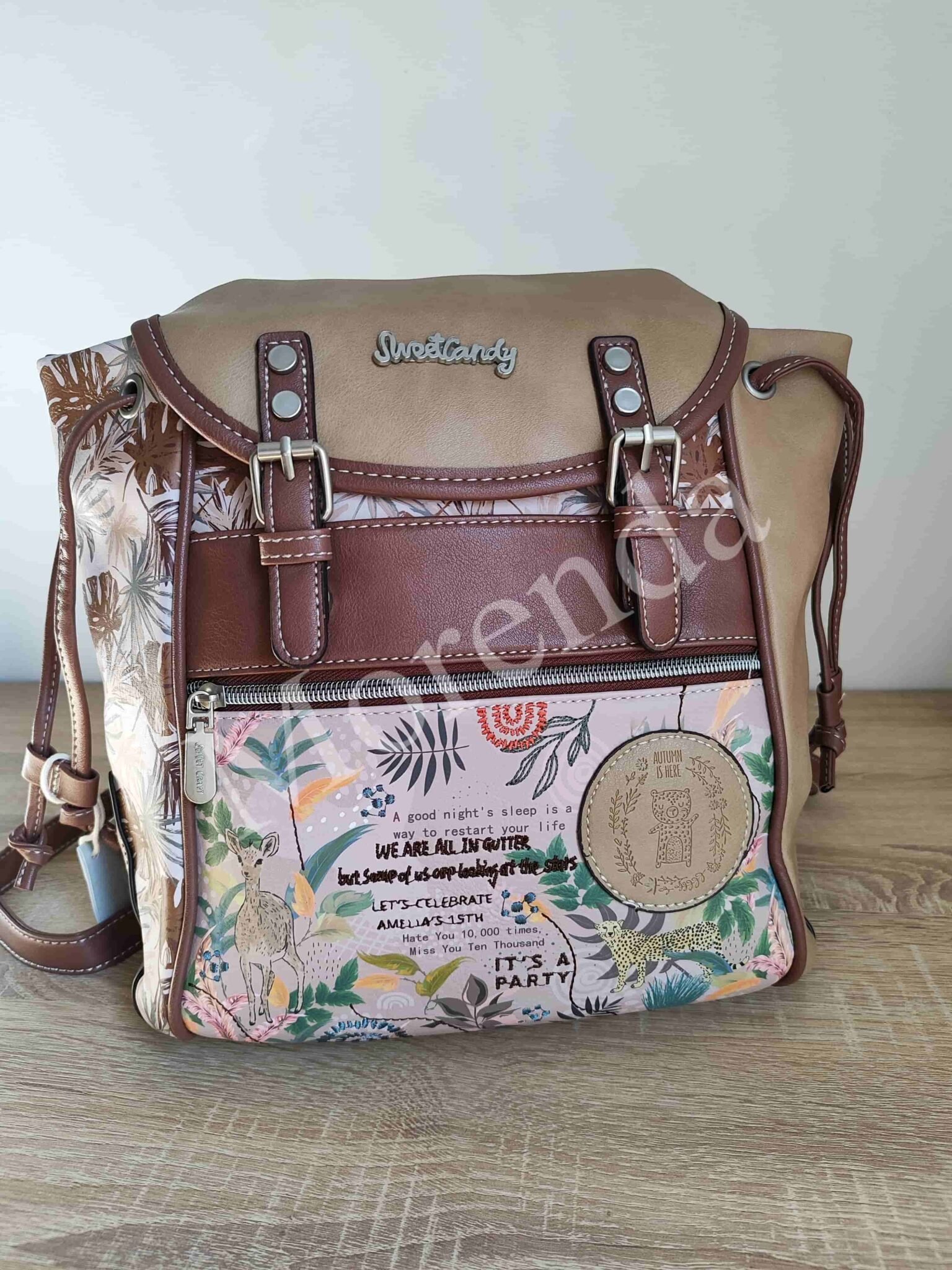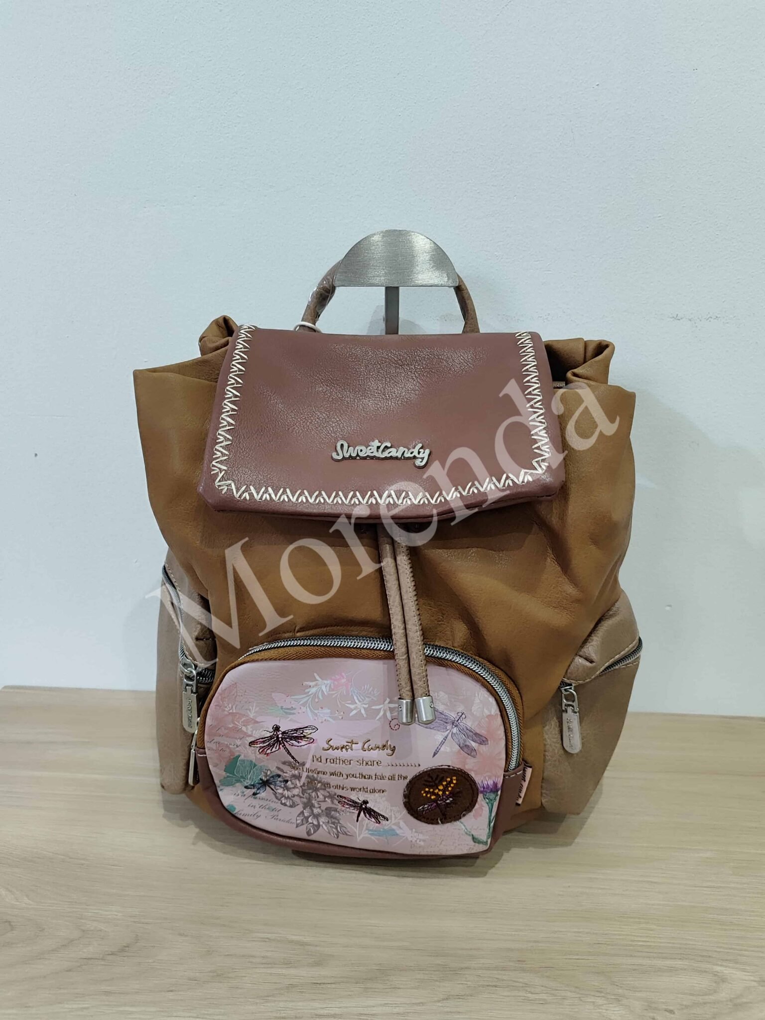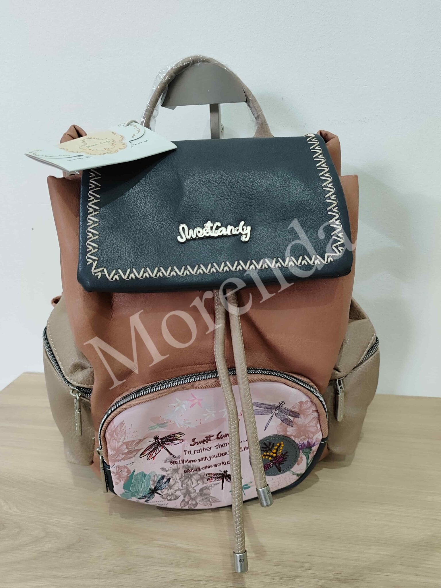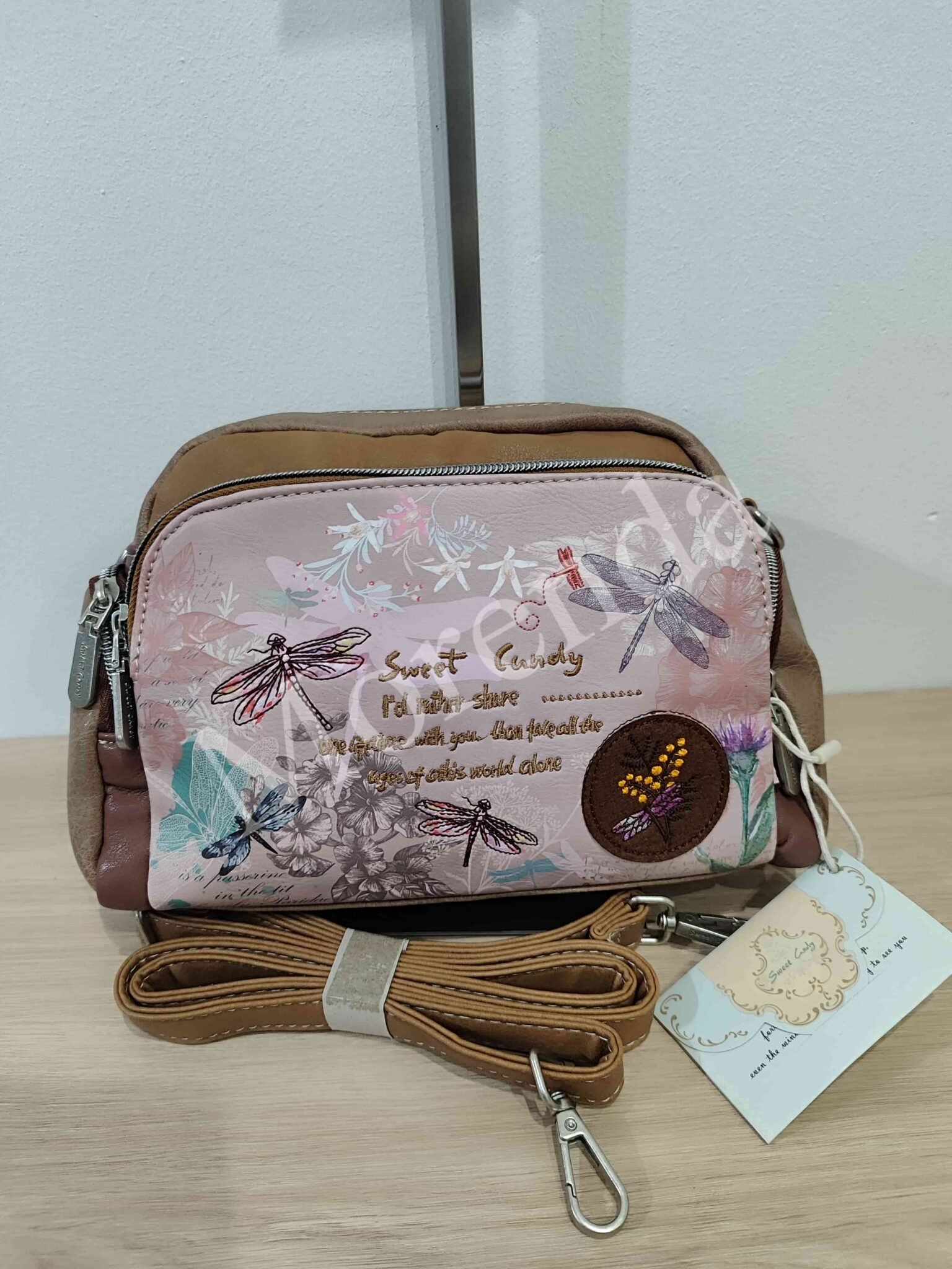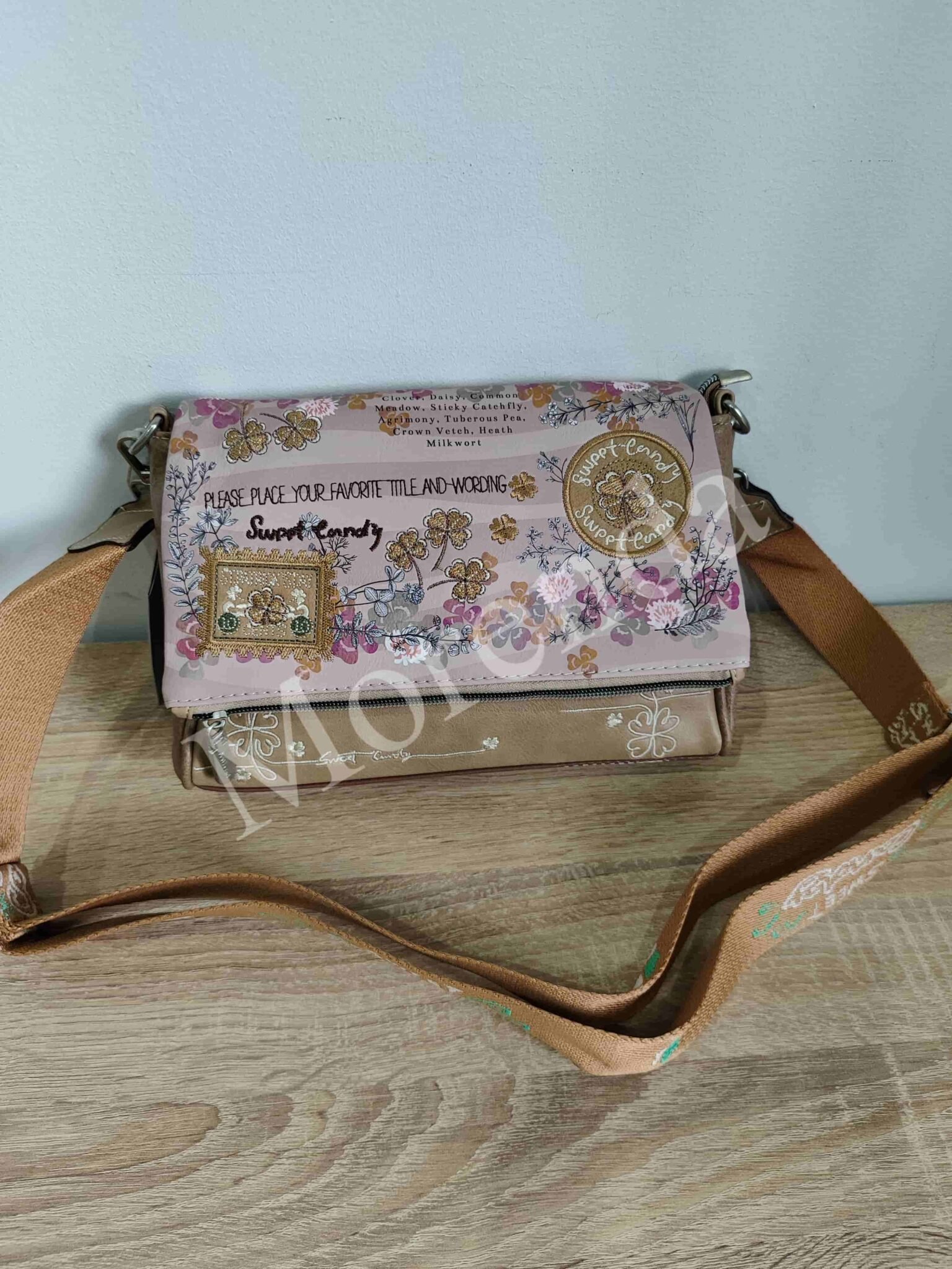 Monedero tarjetero flores marron