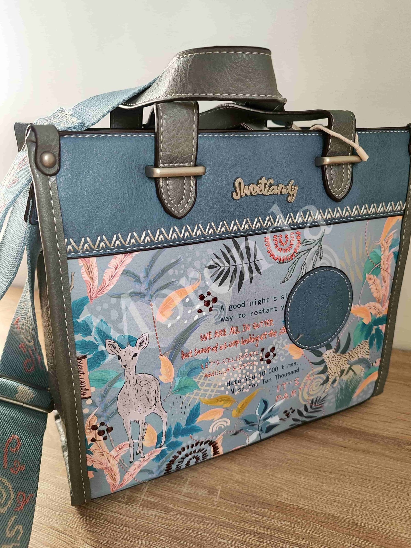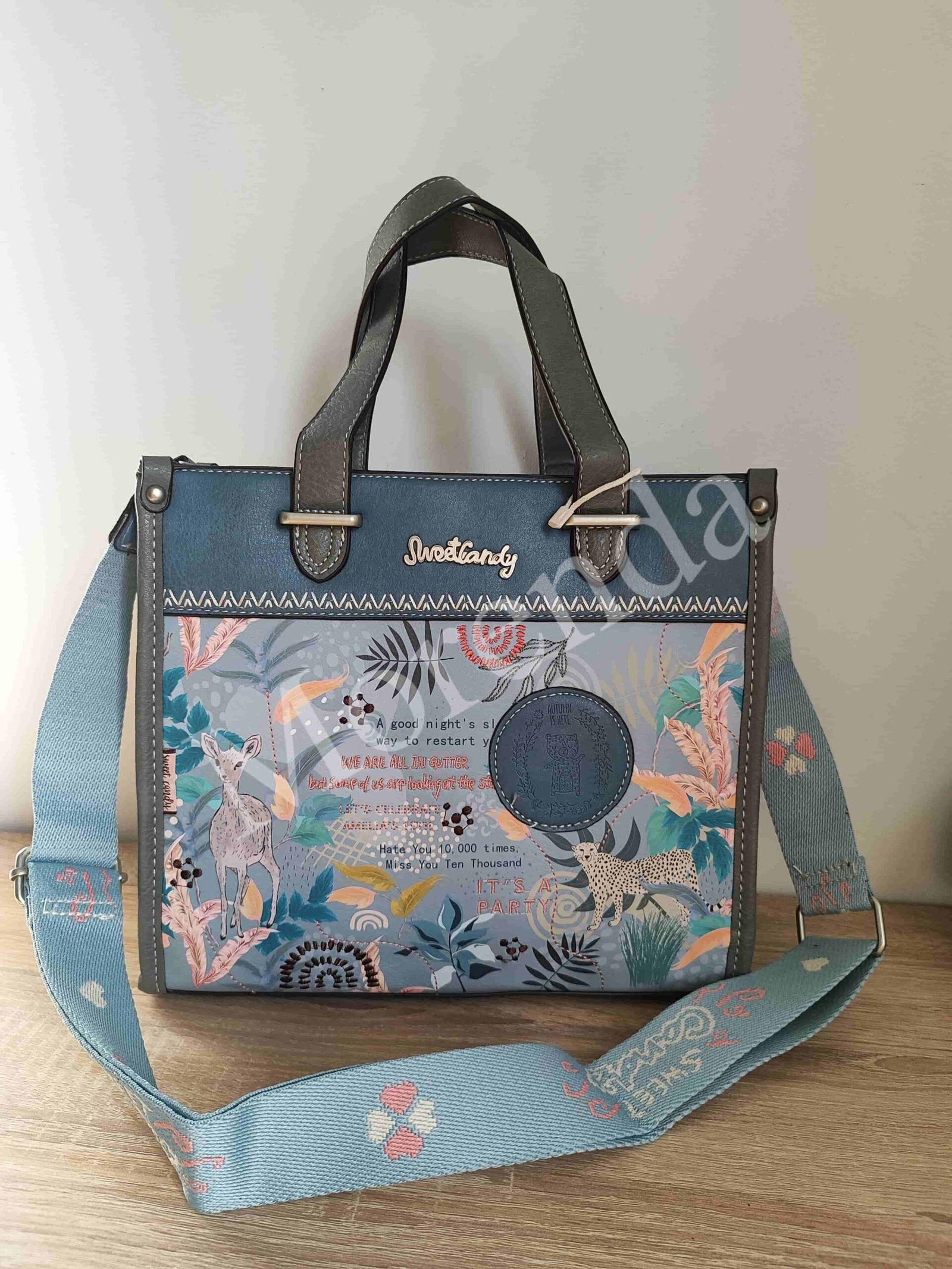 Bolso cuadrado asa de mano azul