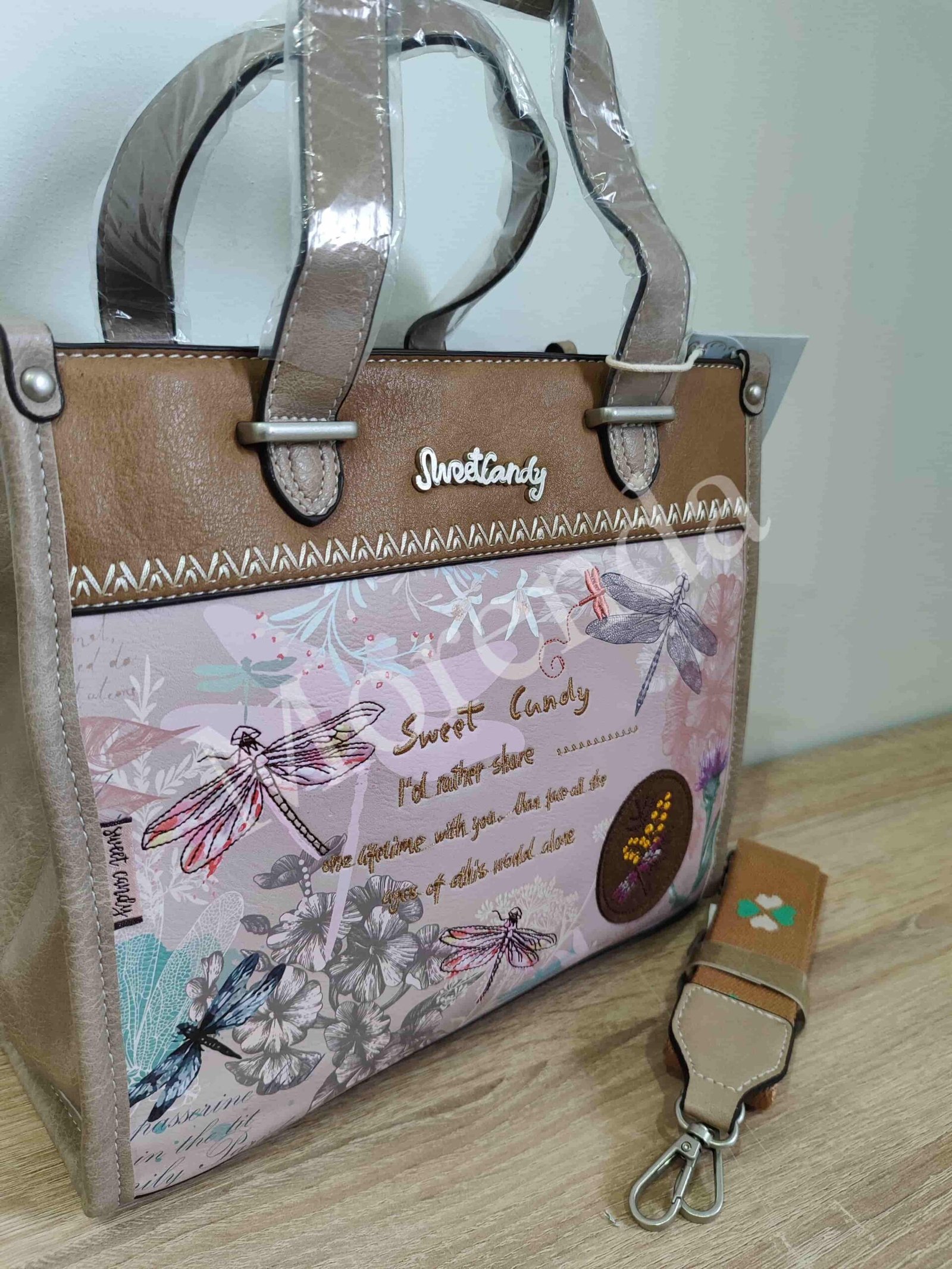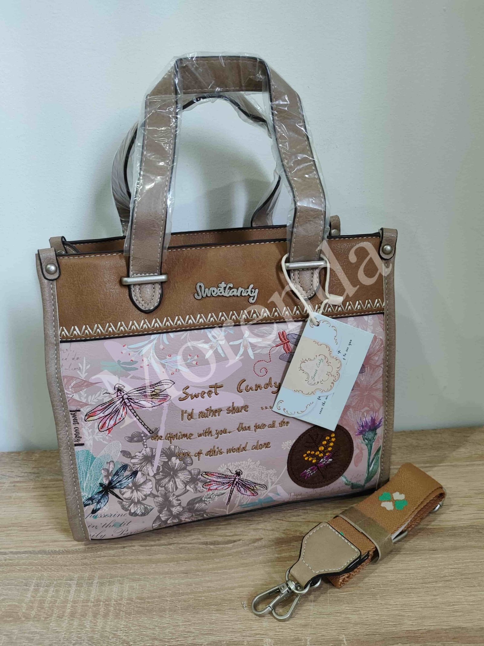 Bolso cuadrado Libelulas marron